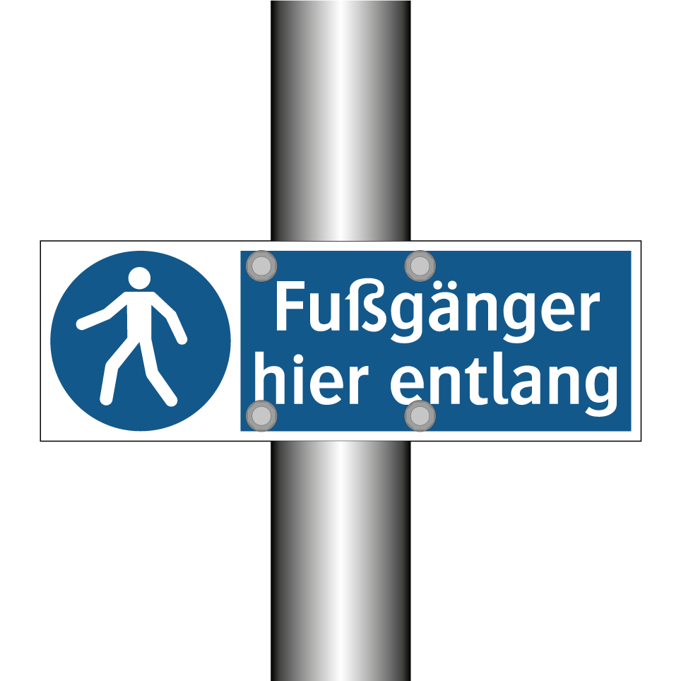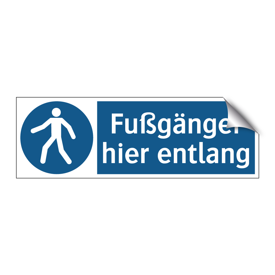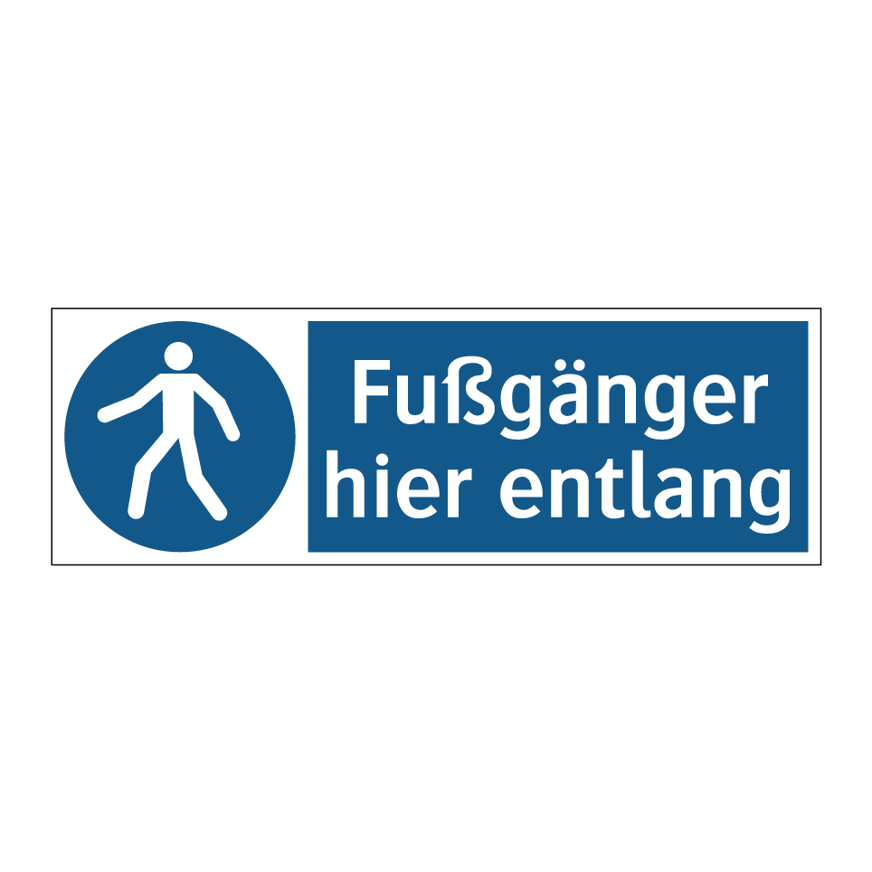 Gebotsschild mit dem Text Fußgänger hier entlang