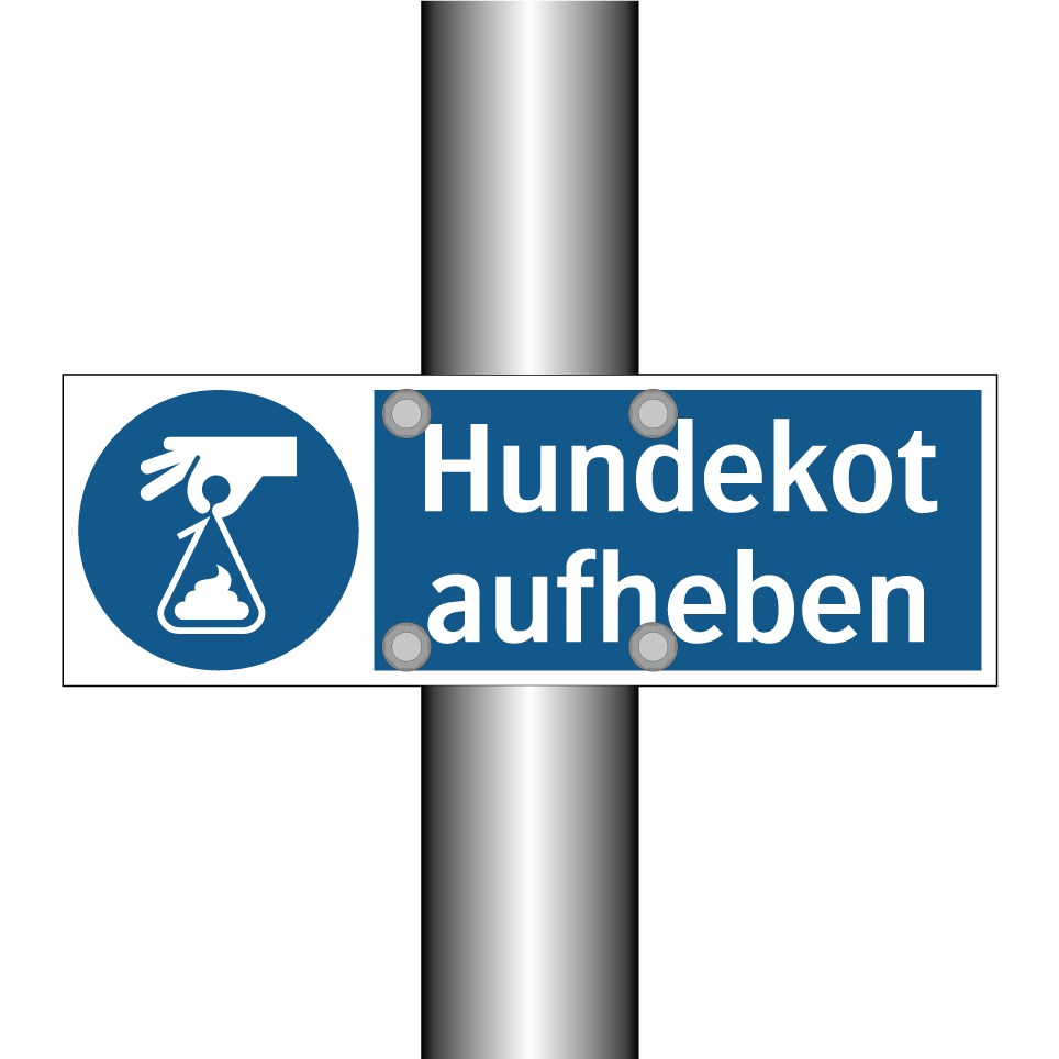 Diese Gebotsschild ist ein unverzichtbares Element für öffentliche und private Bereiche, in denen Hunde erlaubt sind. Mit ihrer klaren blauen Hintergrundfarbe und der auffälligen weißen Schrift fordert sie Hundebesitzer auf, die Hinterlassenschaften ihrer Vierbeiner zu beseitigen. Ideal für Parks, Gehwege, Wohnanlagen und andere Gemeinschaftsbereiche, trägt diese Gebotsschild zur Sauberkeit und Hygiene bei. Sie erinnert die Menschen daran, Verantwortung zu übernehmen und die Umwelt sauber zu halten. Durch die strategische Platzierung an stark frequentierten Orten wird die Botschaft effektiv kommuniziert und trägt zu einem angenehmeren Umfeld für alle bei.