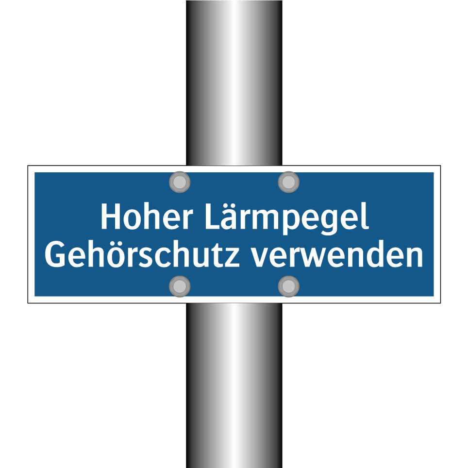 Gebotsschild mit dem Text Hoher Lärmpegel Gehörschutz verwenden