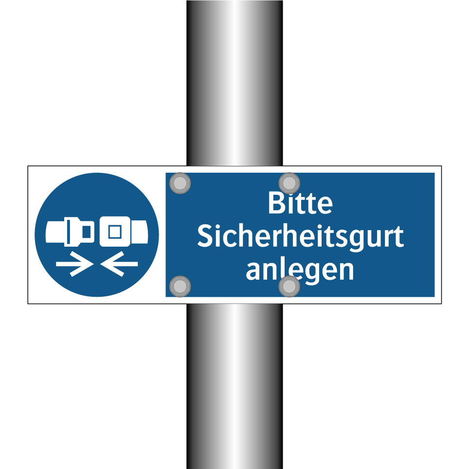 Gebotsschild mit dem Text Bitte Sicherheitsgurt anlegen