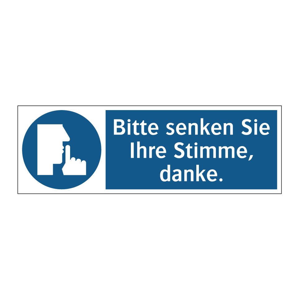 Gebotsschild mit dem Text Bitte senken Sie Ihre Stimme, danke.