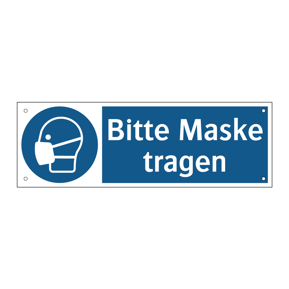 Gebotsschild mit dem Text Bitte Maske tragen