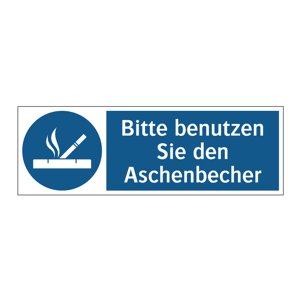 Gebotsschild mit dem Text Bitte benutzen Sie den Aschenbecher
