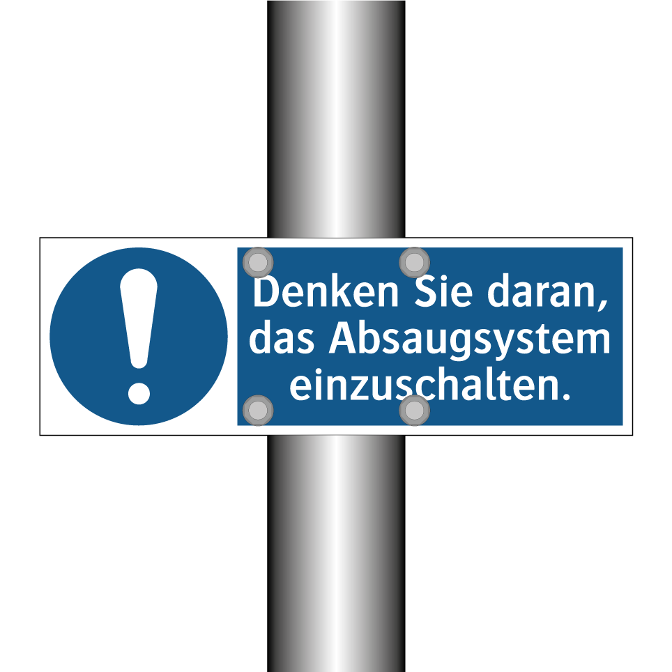 Gebotsschild mit dem Text Denken Sie daran, das Absaugsystem einzuschalten.