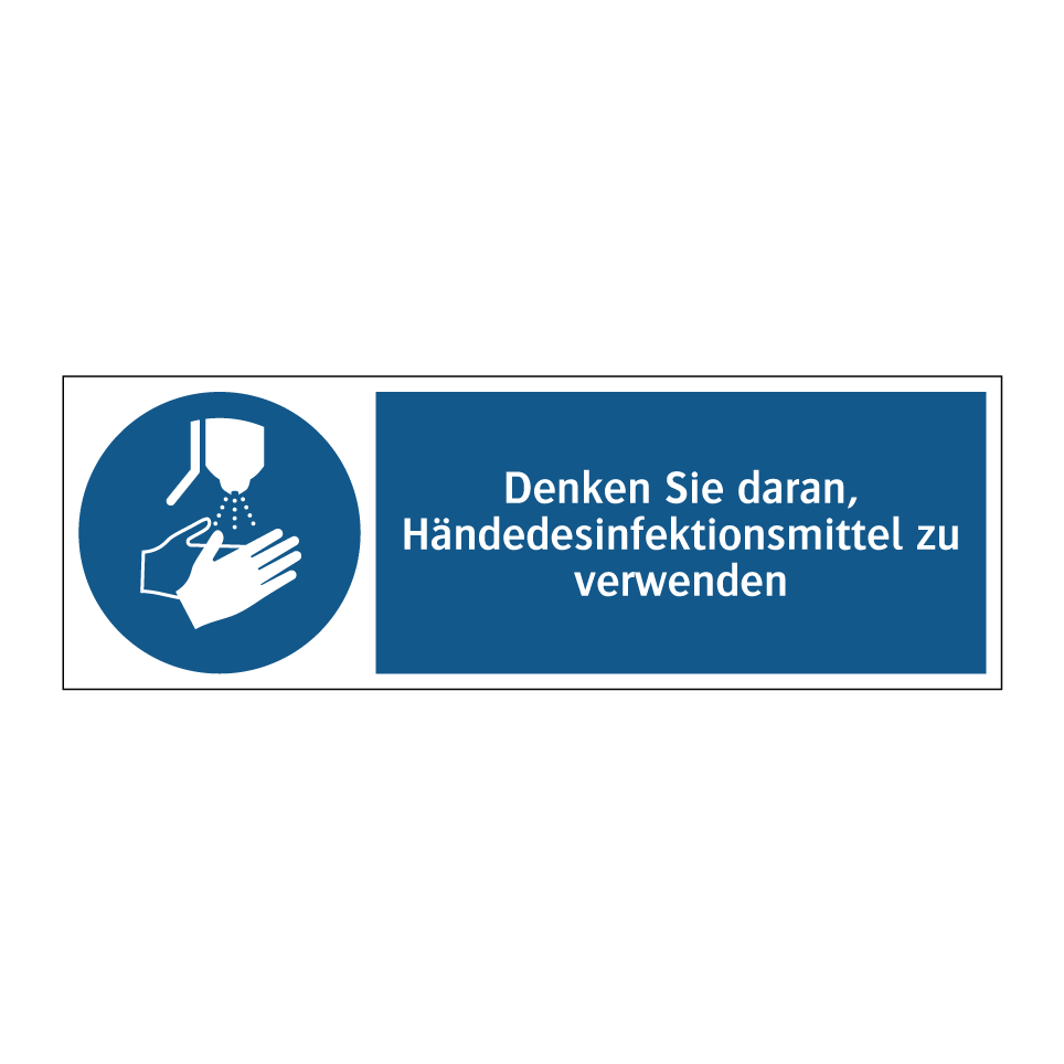 Diese Gebotsschild ist ein unverzichtbares Element für jede Umgebung, in der Hygiene oberste Priorität hat. Mit ihrer klaren blauen Hintergrundfarbe und der auffälligen weißen Schrift erinnert sie effektiv daran, Desinfektionsmittel zu verwenden. Ideal für den Einsatz in Krankenhäusern, Arztpraxen, Büros und öffentlichen Einrichtungen, sorgt sie dafür, dass die Besucher und Mitarbeiter stets an die Wichtigkeit der Handhygiene erinnert werden. Platzieren Sie diese Gebotsschild an Eingängen, in Waschräumen oder in Bereichen mit hohem Publikumsverkehr, um die Einhaltung von Hygienestandards zu fördern. Diese visuelle Erinnerung trägt dazu bei, die Verbreitung von Keimen zu minimieren und eine gesunde Umgebung zu gewährleisten.