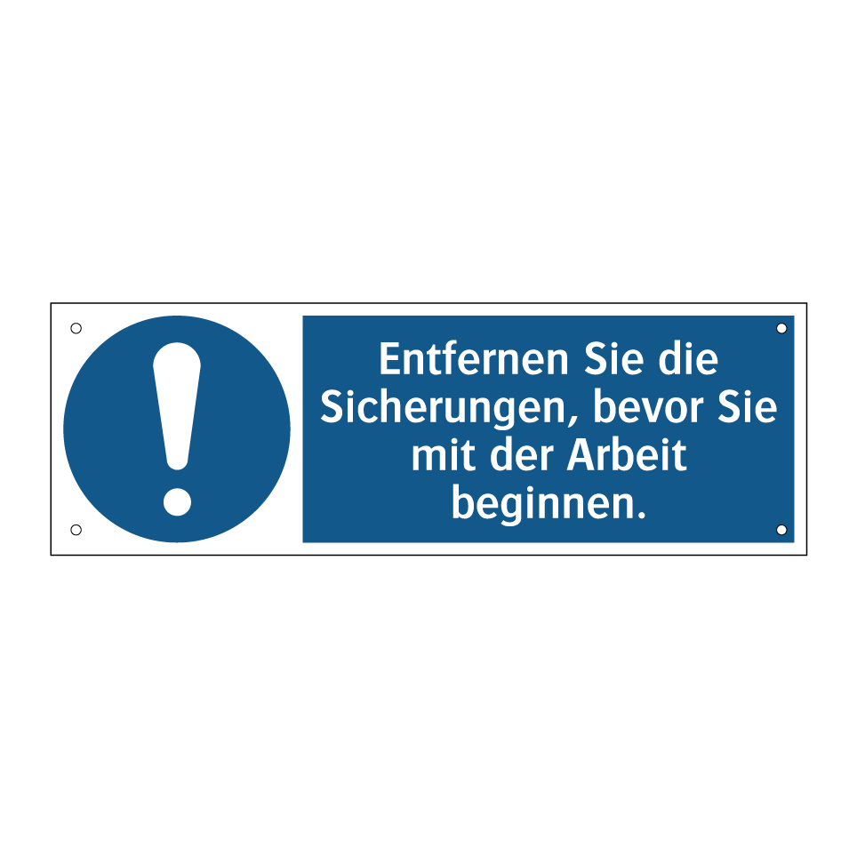 Diese Gebotsschild ist ein unverzichtbares Element für die Sicherheit am Arbeitsplatz. Mit ihrer klaren blauen Hintergrundfarbe und der auffälligen weißen Schrift sorgt sie dafür, dass wichtige Sicherheitsmaßnahmen nicht übersehen werden. Diese Gebotsschilder sind ideal für industrielle Umgebungen, Werkstätten oder Baustellen, wo es entscheidend ist, dass Mitarbeiter vor Beginn der Arbeit die Sicherungen entfernen. Die deutliche Symbolik und der prägnante Text machen es einfach, die Anweisungen schnell zu erfassen und umzusetzen. Platzieren Sie diese Gebotsschild an gut sichtbaren Stellen, um die Einhaltung von Sicherheitsvorschriften zu gewährleisten und Unfälle zu vermeiden.