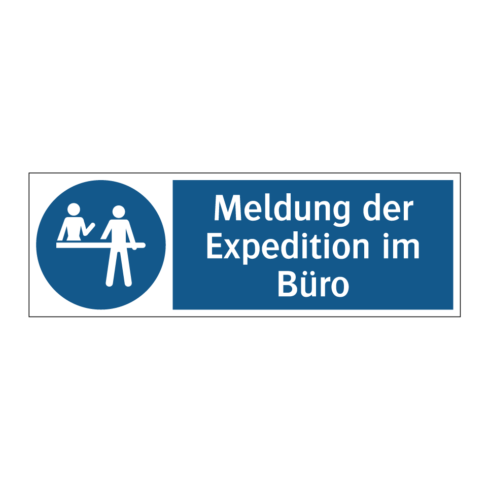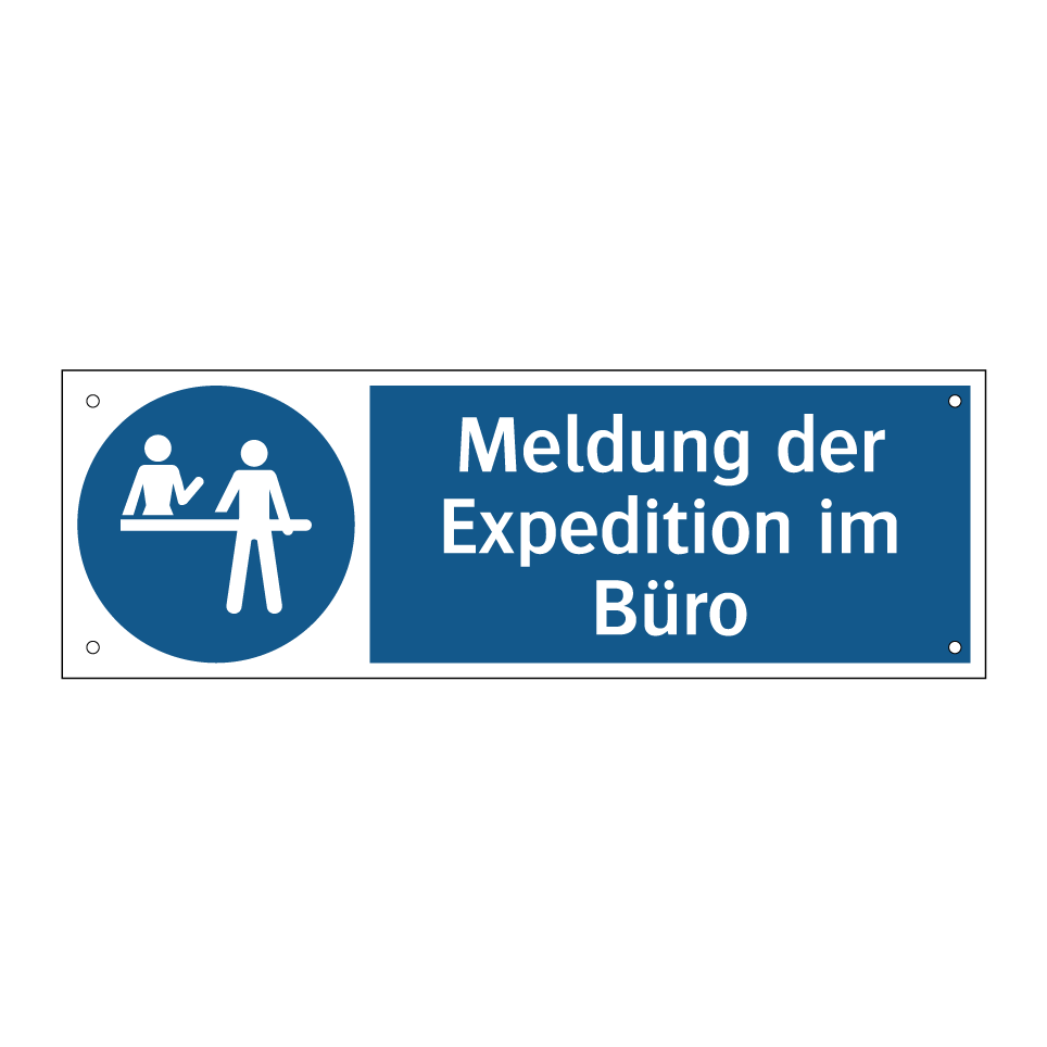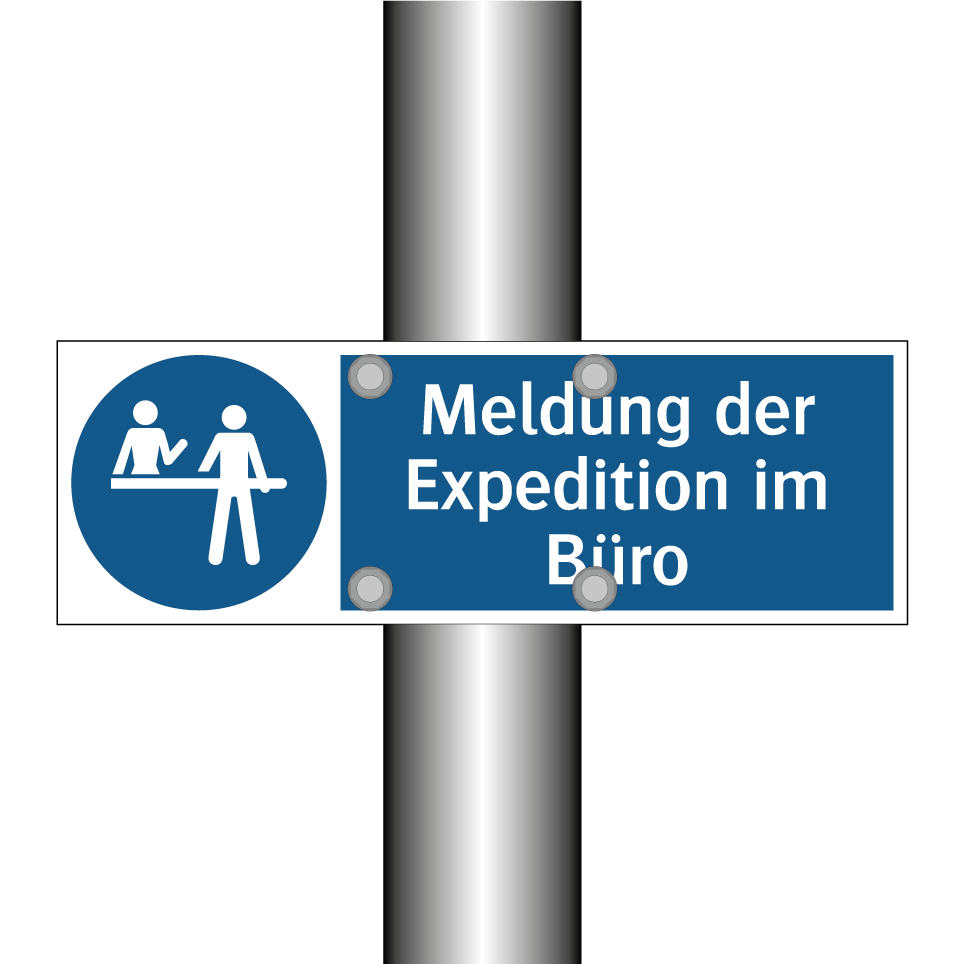 Gebotsschild mit dem Text Meldung der Expedition im Büro