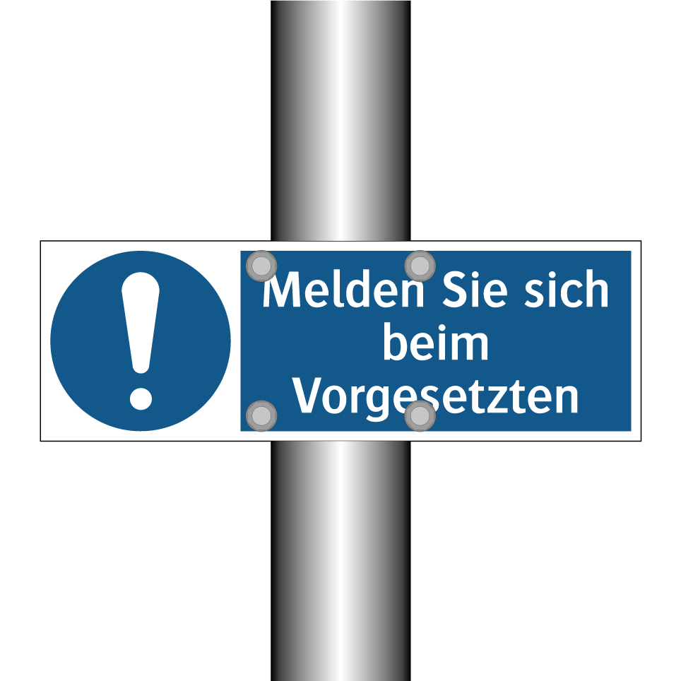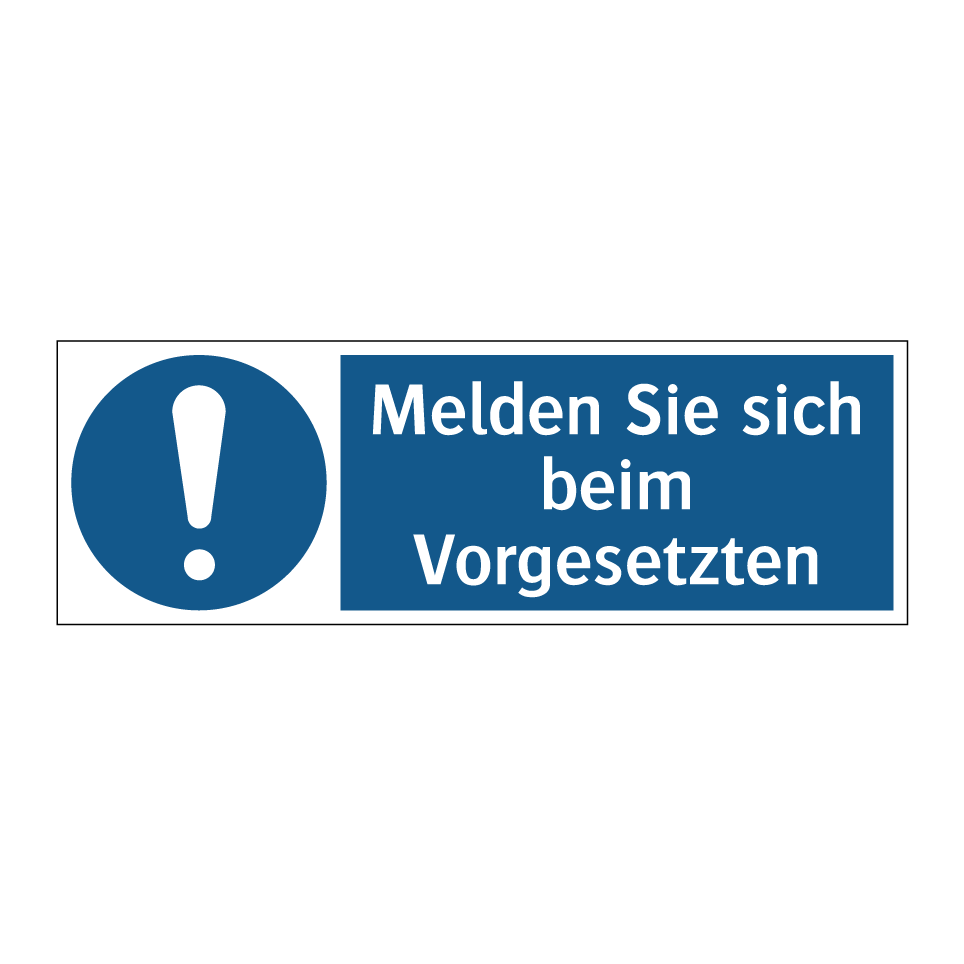 Gebotsschild mit dem Text Melden Sie sich beim Vorgesetzten