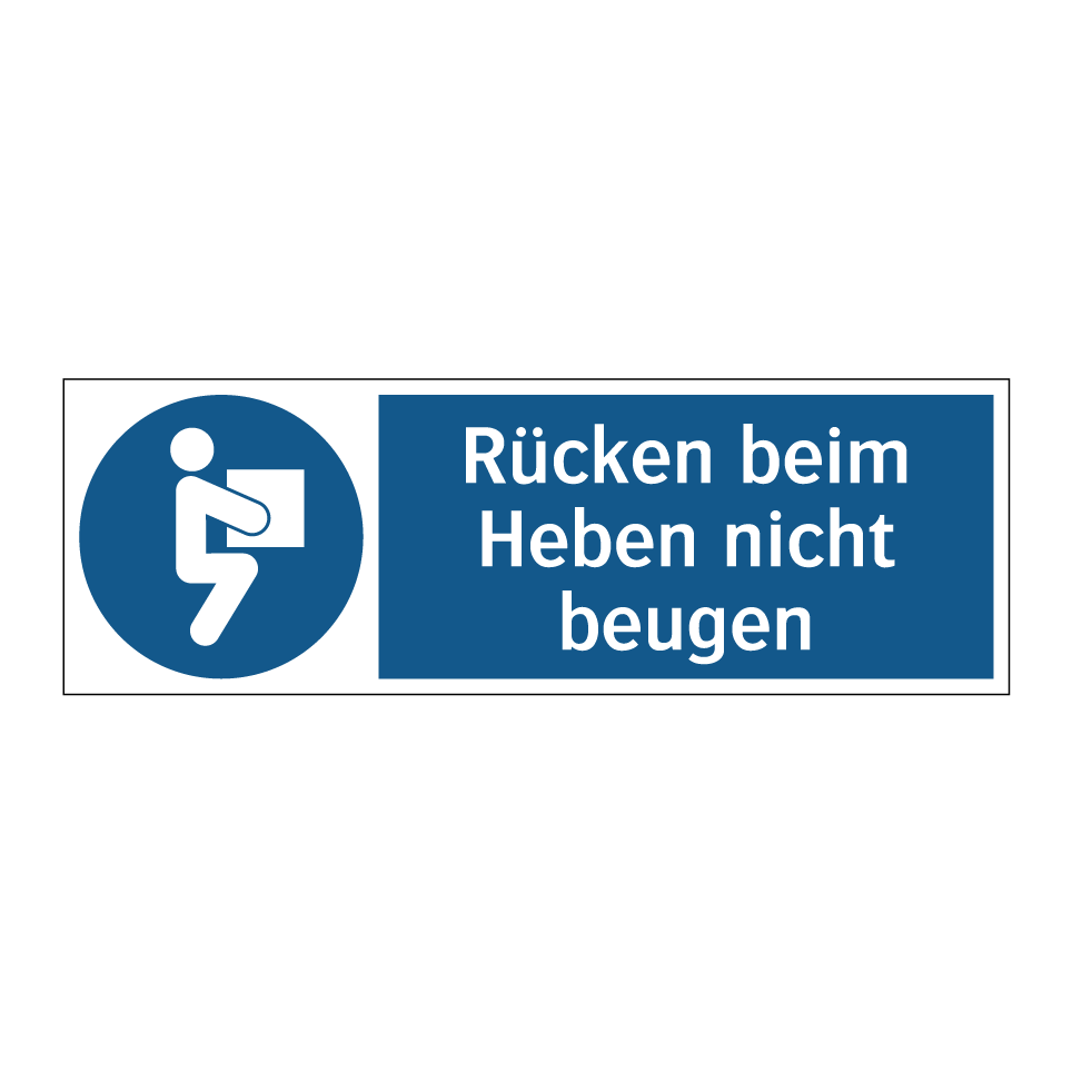 Gebotsschild mit dem Text Rücken beim Heben nicht beugen