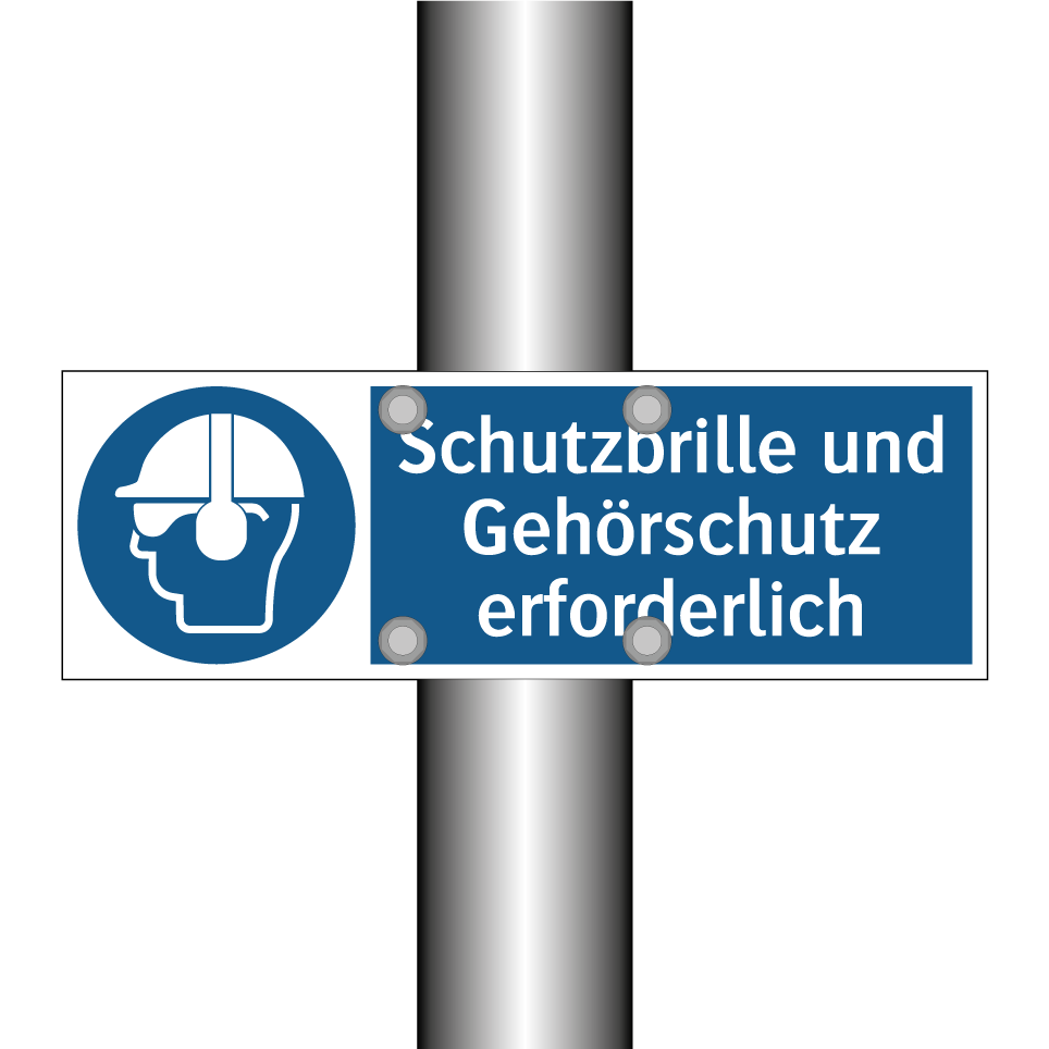 Gebotsschild mit dem Text Schutzbrille und Gehörschutz erforderlich