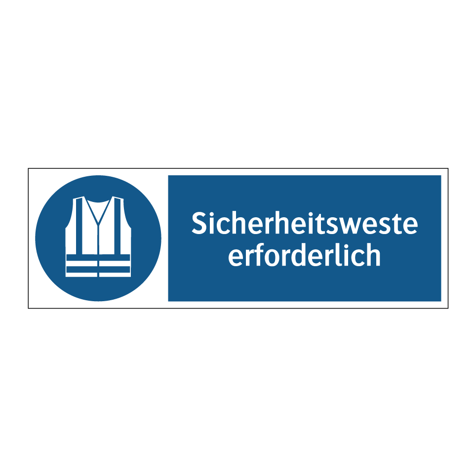 Diese Gebotsschild mit blauem Hintergrund und weißer Schrift ist ein unverzichtbares Element für die Sicherheit am Arbeitsplatz. Sie weist darauf hin, dass das Tragen einer Sicherheitsweste in bestimmten Bereichen obligatorisch ist. Ideal für Baustellen, Lagerhallen oder industrielle Umgebungen, sorgt sie dafür, dass alle Mitarbeiter und Besucher die erforderlichen Sicherheitsmaßnahmen einhalten. Platzieren Sie diese Gebotsschild an Eingängen, in Umkleideräumen oder an anderen strategischen Punkten, um maximale Sichtbarkeit zu gewährleisten. Durch die klare Symbolik und die prägnante Botschaft wird die Einhaltung der Sicherheitsvorschriften effektiv gefördert.
