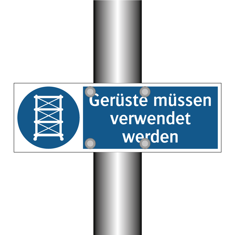 Gebotsschild mit dem Text Gerüste müssen verwendet werden