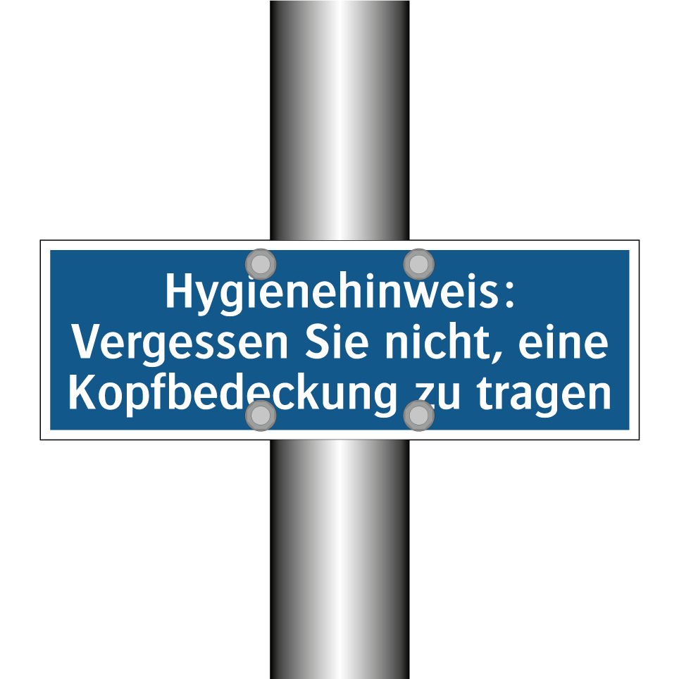 Gebotsschild mit dem Text Hygienehinweis: Vergessen Sie nicht, eine Kopfbedeckung zu tragen
