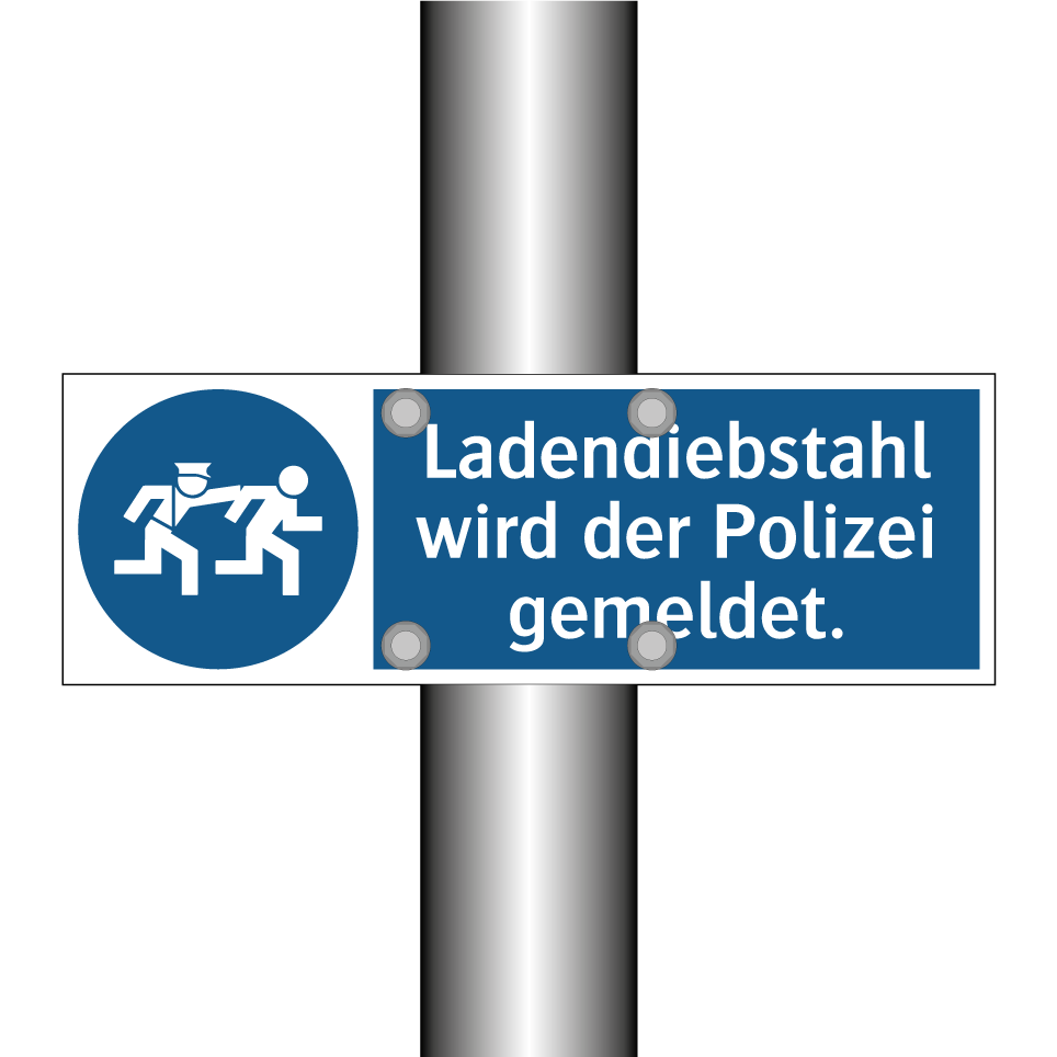 Gebotsschild mit dem Text Ladendiebstahl wird der Polizei gemeldet.