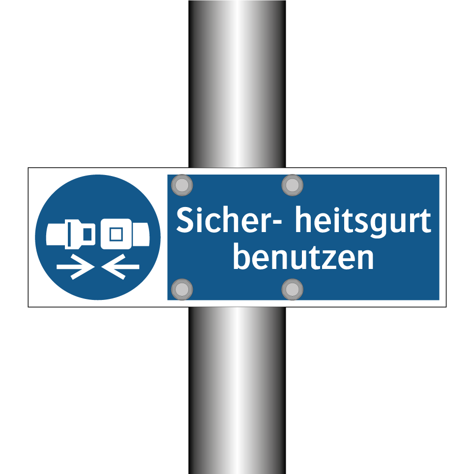 Gebotsschild mit dem Text Sicher- heitsgurt benutzen