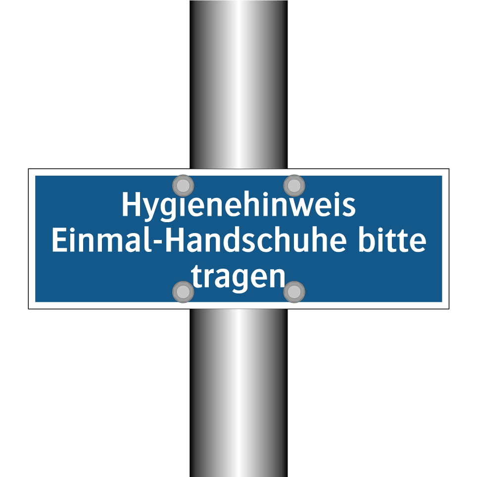 Gebotsschild mit dem Text Hygienehinweis Einmal-Handschuhe bitte tragen
