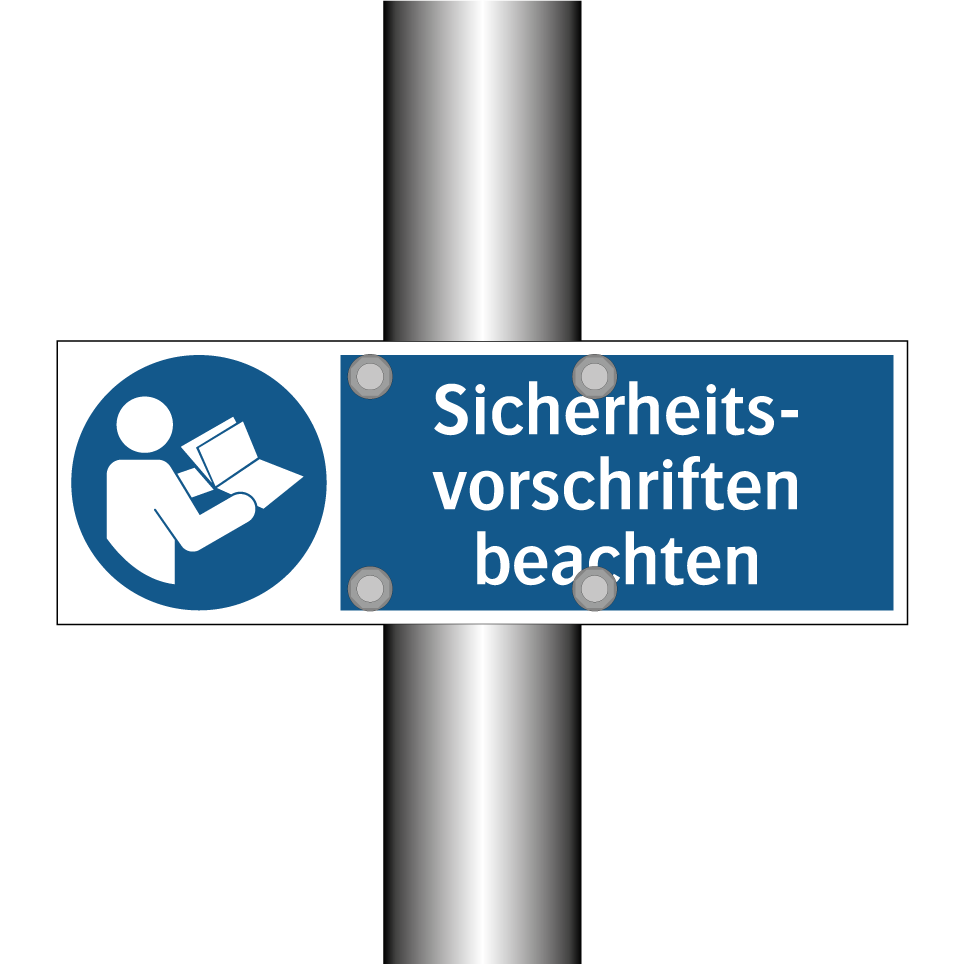 Gebotsschild mit dem Text Sicherheits- vorschriften beachten