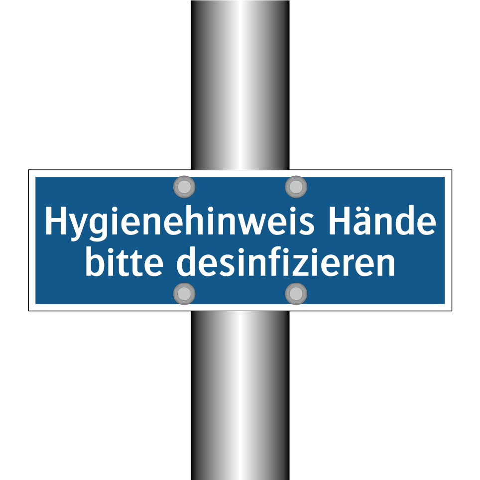 Gebotsschild mit dem Text Hygienehinweis Hände bitte desinfizieren