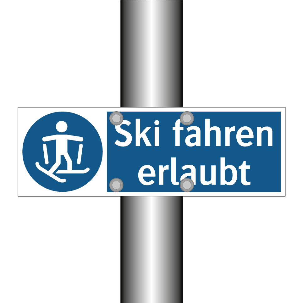 Gebotsschild mit dem Text Ski fahren erlaubt