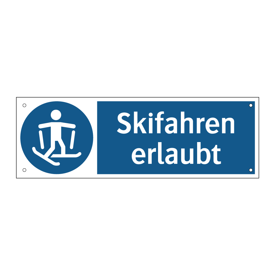 Diese Gebotsschild mit blauem Hintergrund und weißer Schrift ist ideal für Skigebiete und Wintersportorte. Sie signalisiert klar und deutlich, dass das Skifahren an diesem Ort gestattet ist. Platzieren Sie diese Gebotsschild an den Eingängen von Skipisten, in Skiliftbereichen oder an anderen relevanten Stellen, um Skifahrern die Erlaubnis zu signalisieren. Diese visuell ansprechende und leicht verständliche Beschilderung sorgt für Klarheit und Sicherheit auf den Pisten. Nutzen Sie diese Gebotsschild, um Missverständnisse zu vermeiden und den reibungslosen Ablauf im Skigebiet zu gewährleisten. Perfekt für Betreiber von Skigebieten, die eine klare Kommunikation mit ihren Gästen sicherstellen möchten.