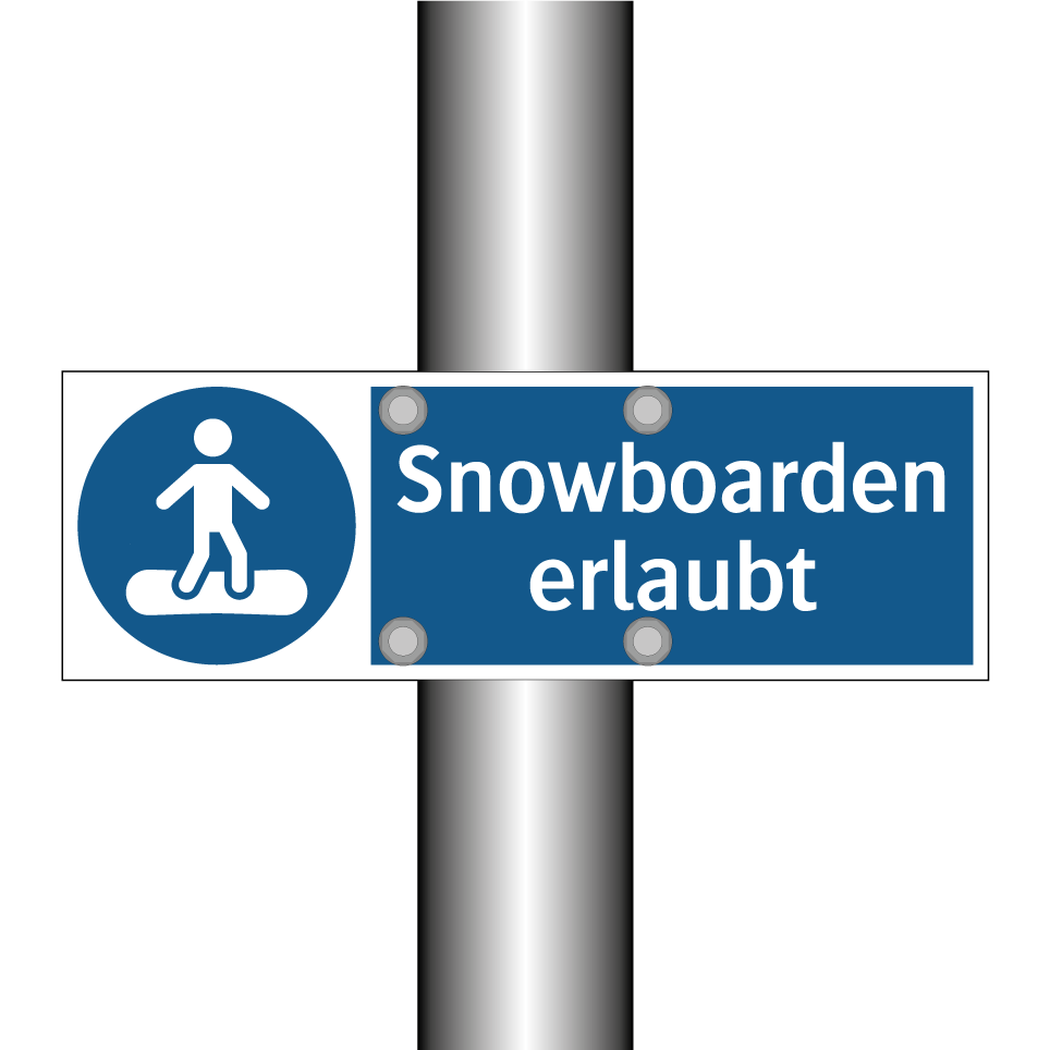 Gebotsschild mit dem Text Snowboarden erlaubt