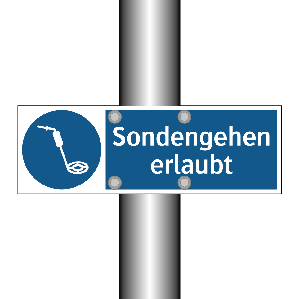 Gebotsschild mit dem Text Sondengehen erlaubt