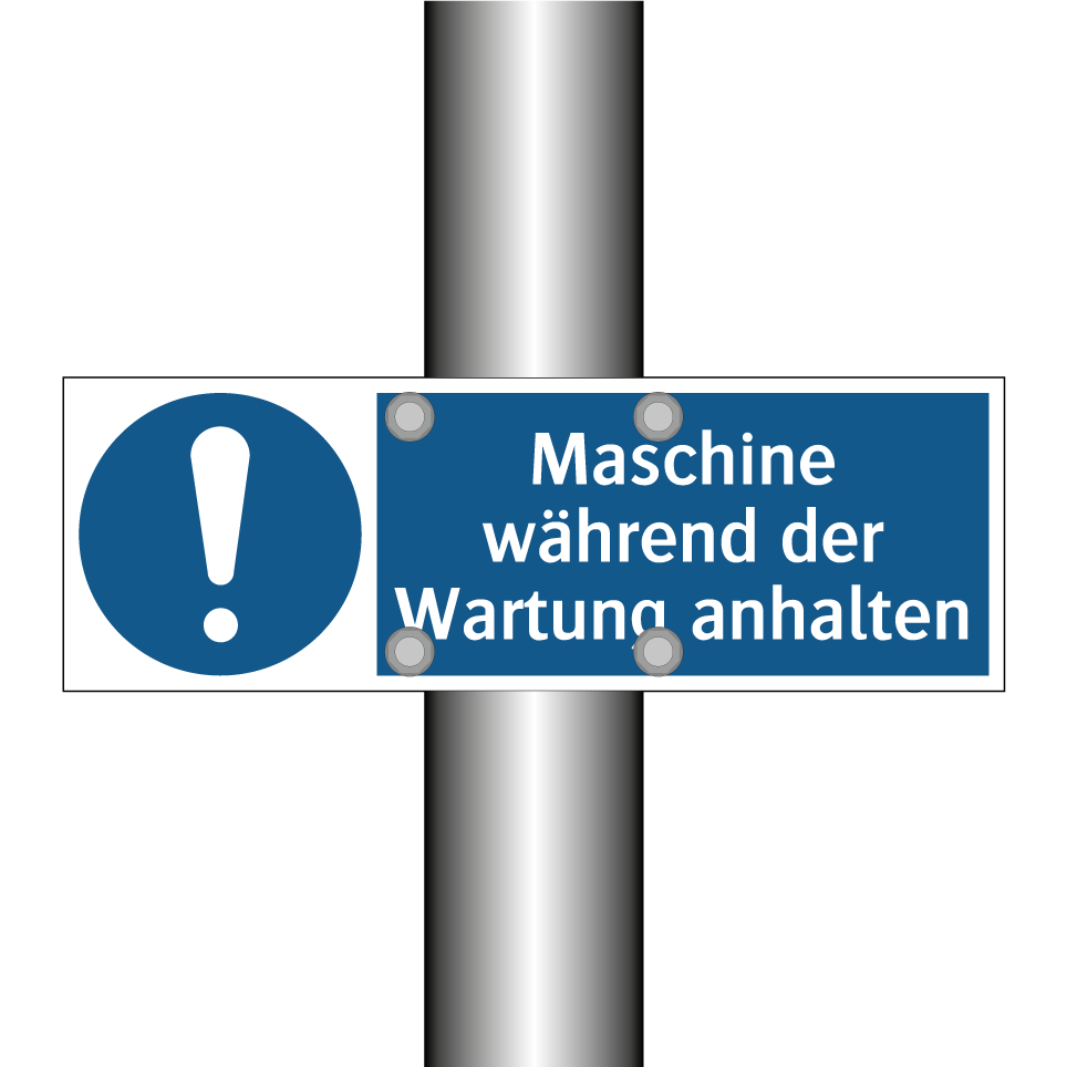 Gebotsschild mit dem Text Maschine während der Wartung anhalten