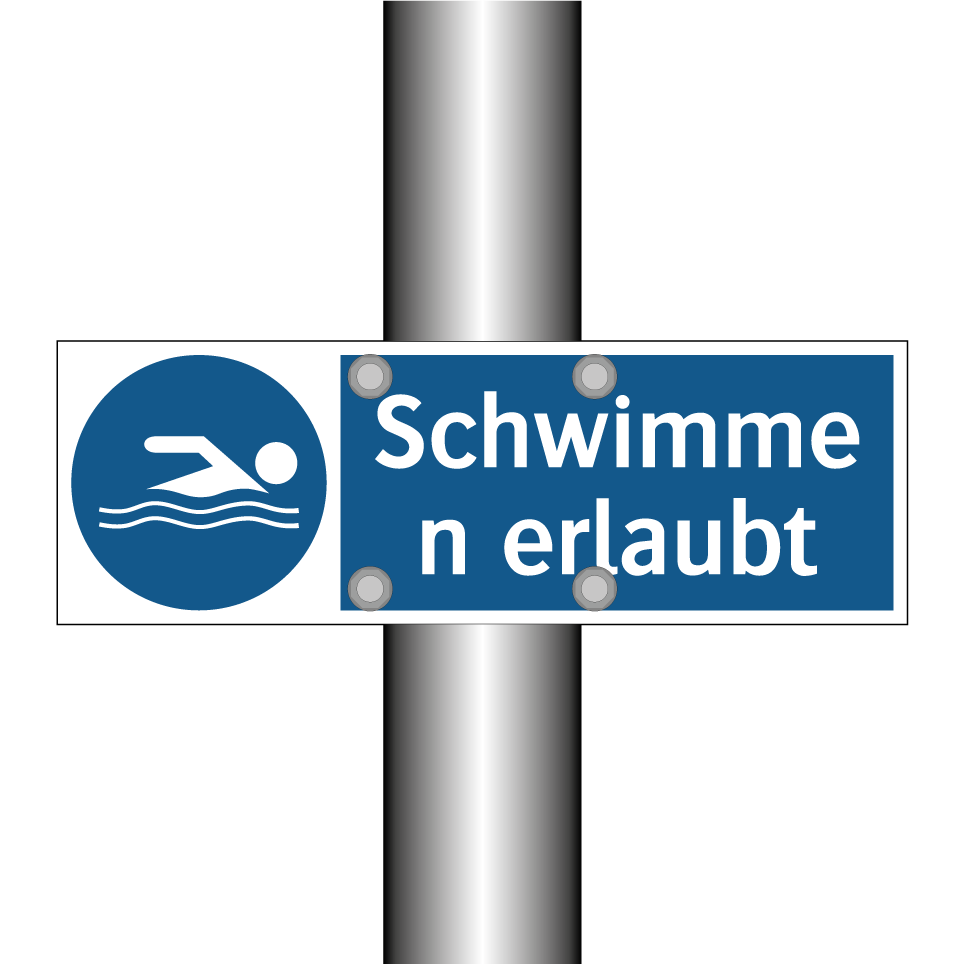Gebotsschild mit dem Text Schwimmen erlaubt