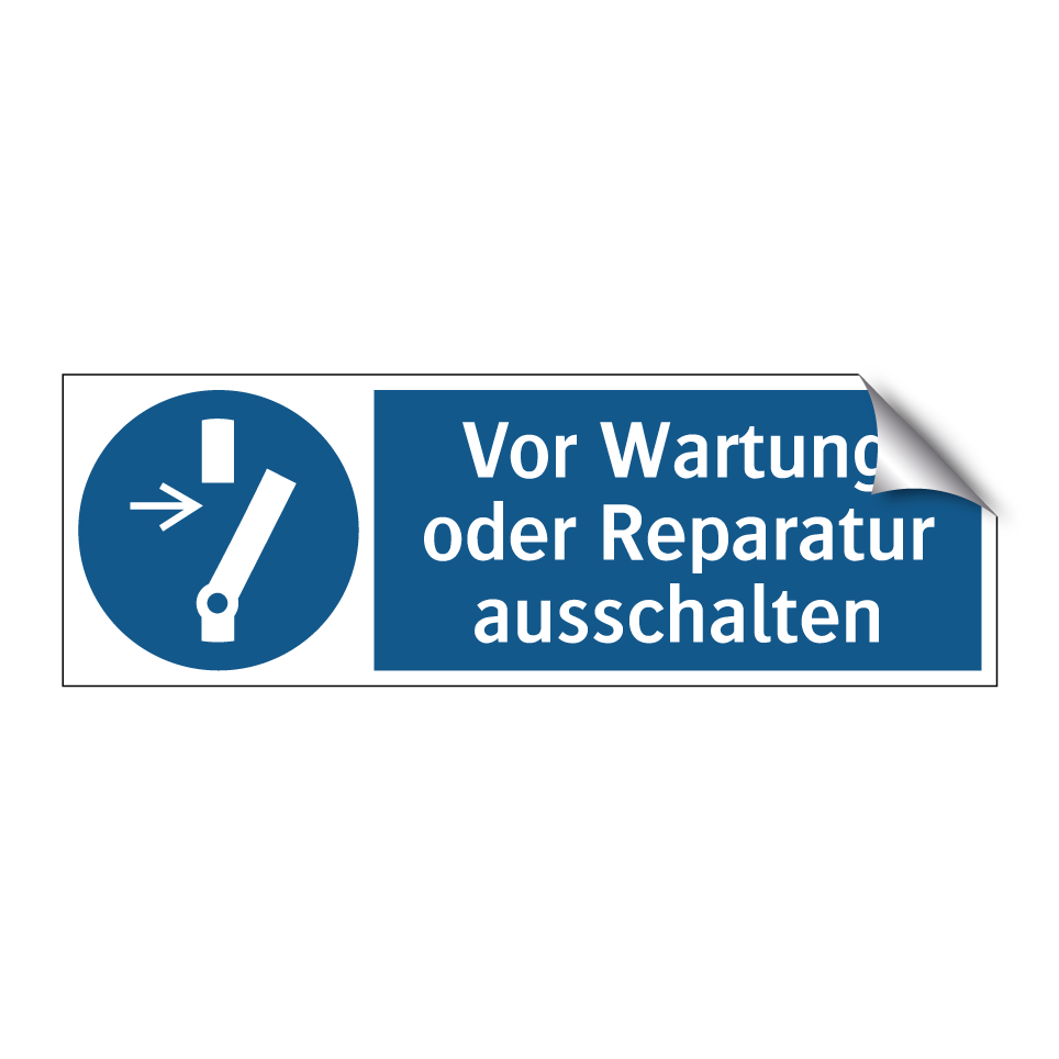 Gebotsschild mit dem Text Vor Wartung oder Reparatur ausschalten