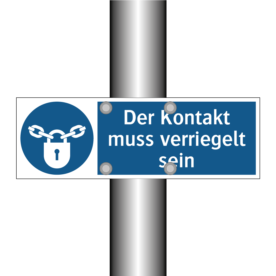 Gebotsschild mit dem Text Der Kontakt muss verriegelt sein