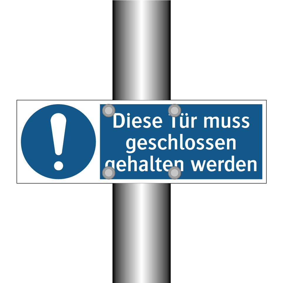 Gebotsschild mit dem Text Diese Tür muss geschlossen gehalten werden