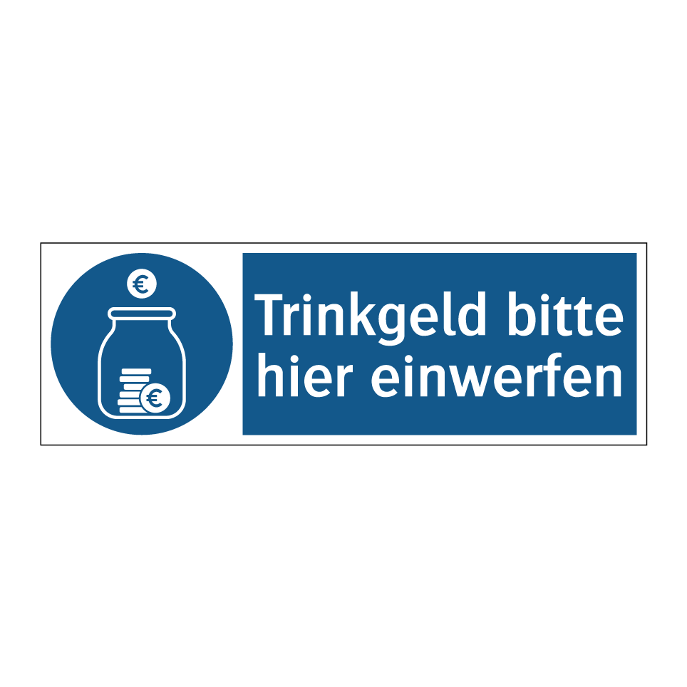 Gebotsschild mit dem Text Trinkgeld bitte hier einwerfen