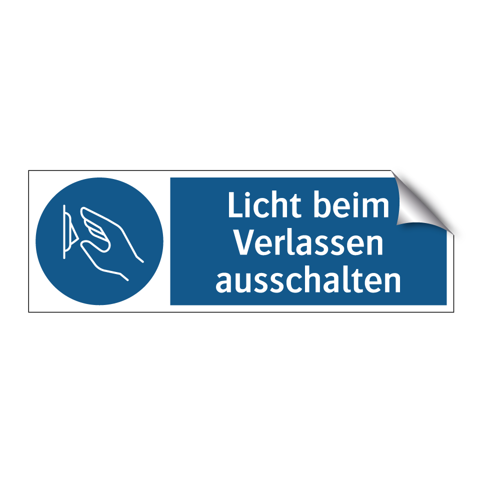 Gebotsschild mit dem Text Licht beim Verlassen ausschalten