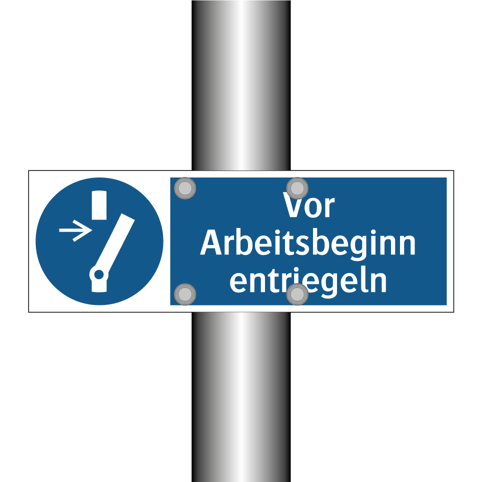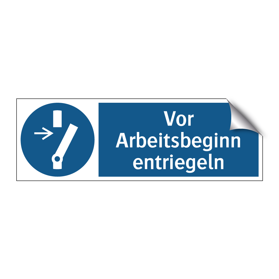 Gebotsschild mit dem Text Vor Arbeitsbeginn entriegeln