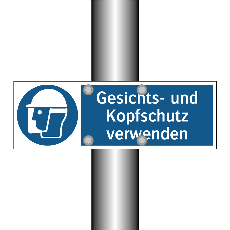 Gebotsschild mit dem Text Gesichts- und Kopfschutz verwenden