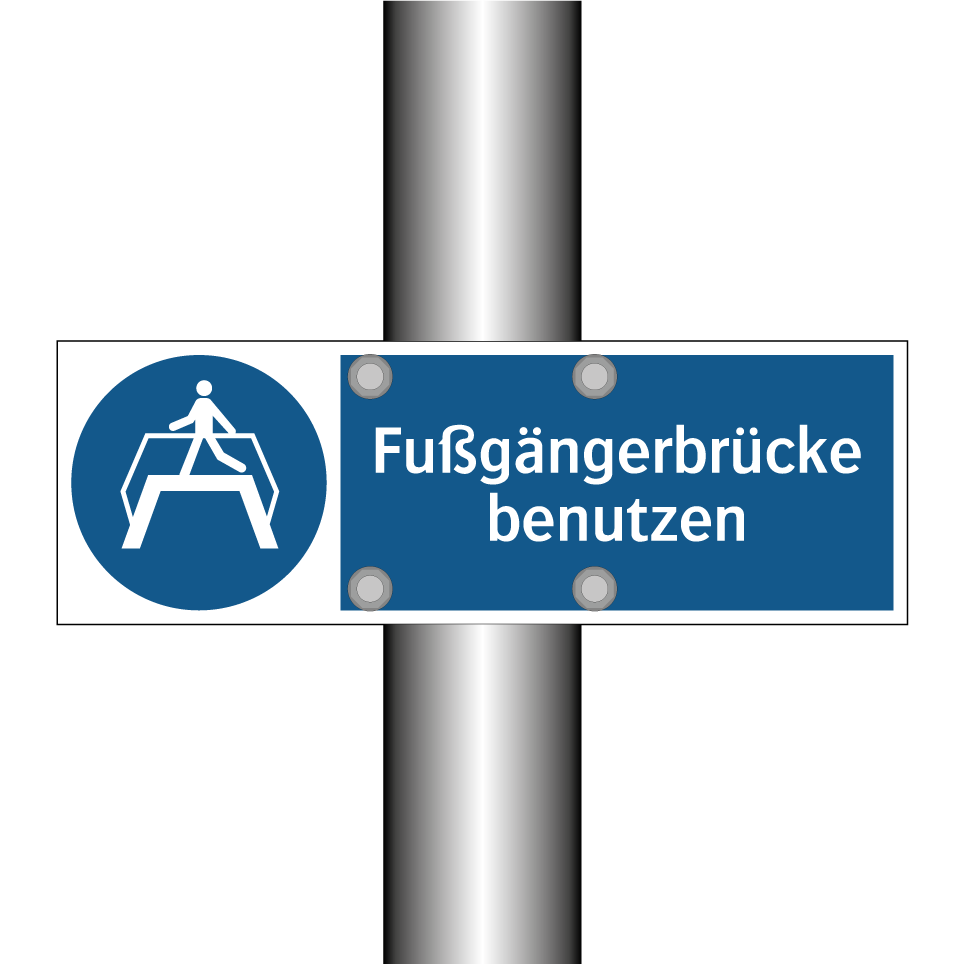 Gebotsschild mit dem Text Fußgängerbrücke benutzen
