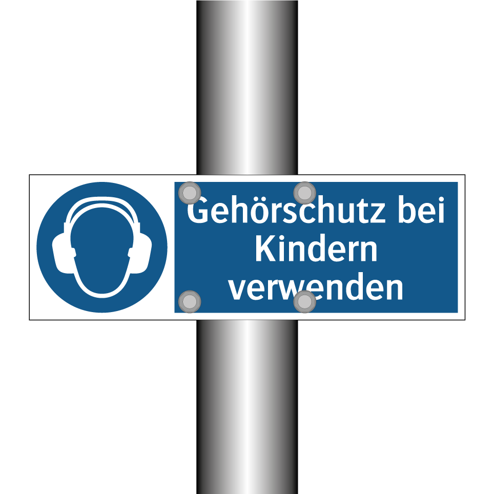 Gebotsschild mit dem Text Gehörschutz bei Kindern verwenden