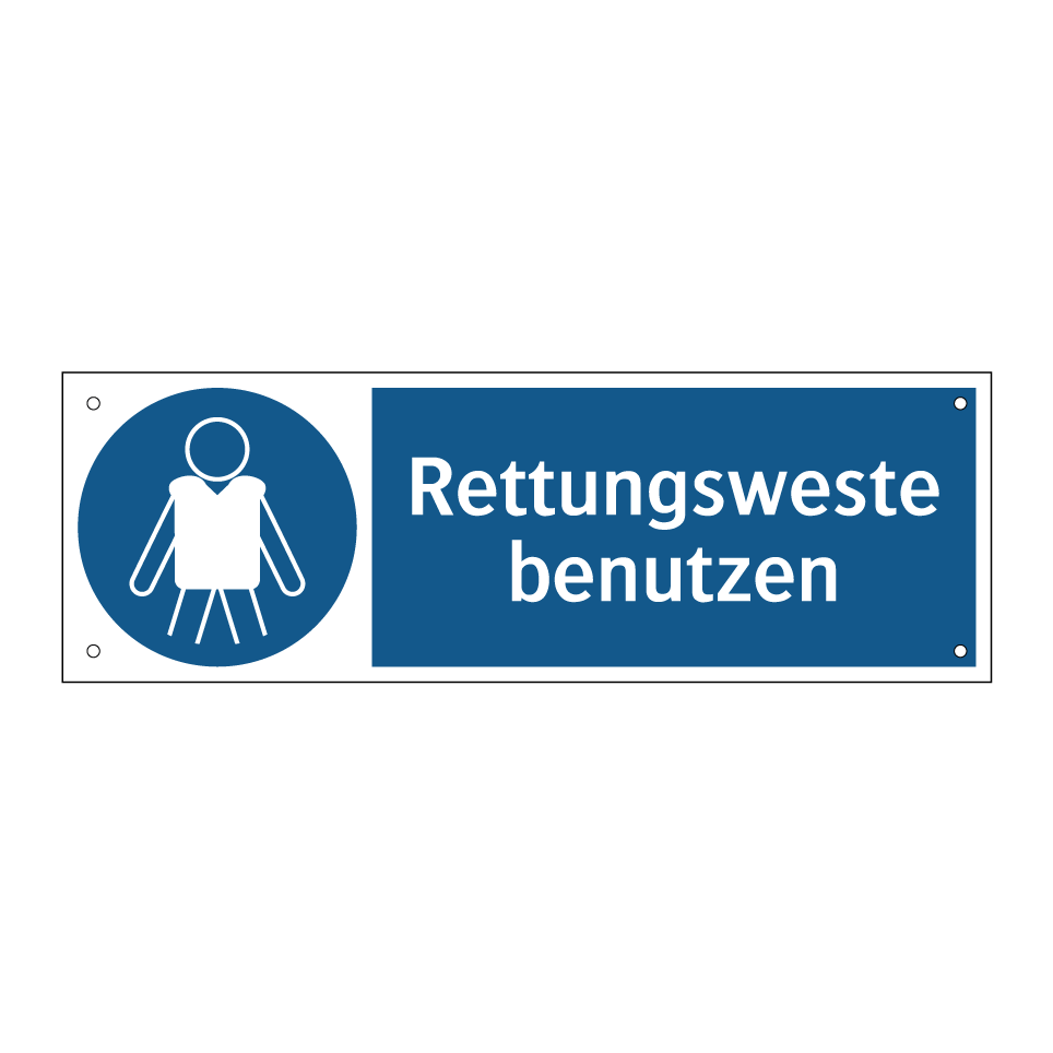 Gebotsschild mit dem Text Rettungsweste benutzen