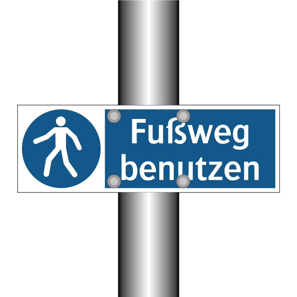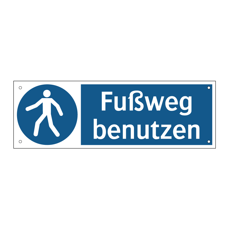 Diese Gebotsschild mit blauem Hintergrund und weißer Schrift ist ideal für die sichere Führung von Fußgängern. Sie weist Passanten darauf hin, den vorgesehenen Gehweg zu nutzen, und trägt so zur Sicherheit im öffentlichen Raum bei. Diese Beschilderung ist besonders nützlich in städtischen Gebieten, Parks, Schulzonen oder an Baustellen, wo eine klare Wegweisung erforderlich ist. Durch die deutliche Symbolik und die klare Botschaft wird das Risiko von Unfällen minimiert. Platzieren Sie diese Gebotsschild an strategischen Punkten, um den Fußgängerverkehr effizient zu lenken und die Einhaltung der Sicherheitsvorschriften zu gewährleisten.