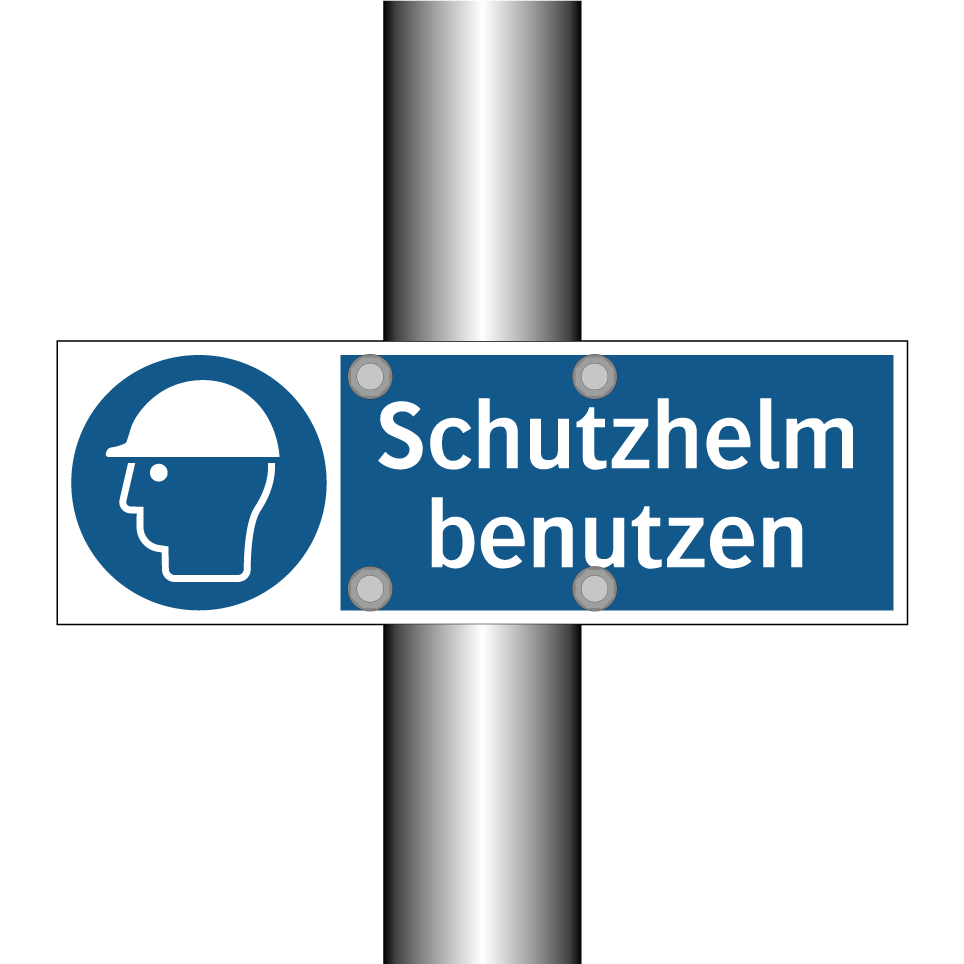 Gebotsschild mit dem Text Schutzhelm benutzen