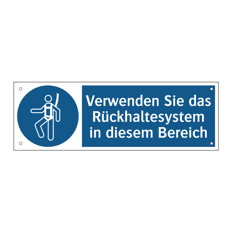 Diese Gebotsschild mit blauer Hintergrundfarbe und weißer Schrift ist ideal für den Einsatz in Bereichen, in denen die Nutzung eines Rückhaltesystems erforderlich ist. Sie dient dazu, die Sicherheit zu gewährleisten und Unfälle zu vermeiden, indem sie klar und deutlich anzeigt, dass ein Rückhaltesystem verwendet werden muss. Diese Gebotsschilder sind besonders nützlich in industriellen Umgebungen, Lagerhäusern oder auf Baustellen, wo Sicherheitsvorkehrungen von größter Bedeutung sind. Platzieren Sie die Gebotsschild an gut sichtbaren Stellen, um sicherzustellen, dass alle Mitarbeiter und Besucher die Anweisung leicht erkennen und befolgen können.