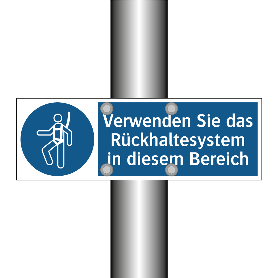 Gebotsschild mit dem Text Verwenden Sie das Rückhaltesystem in diesem Bereich