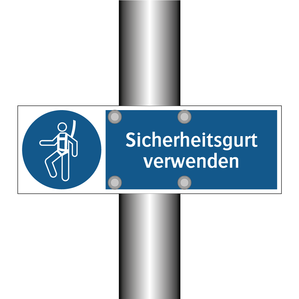 Gebotsschild mit dem Text Sicherheitsgurt verwenden