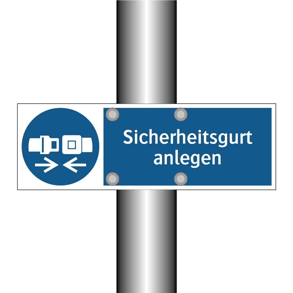 Gebotsschild mit dem Text Sicherheitsgurt anlegen