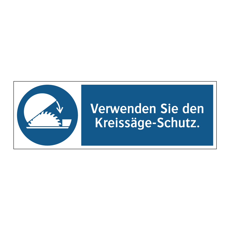 Gebotsschild mit dem Text Verwenden Sie den Kreissäge-Schutz.