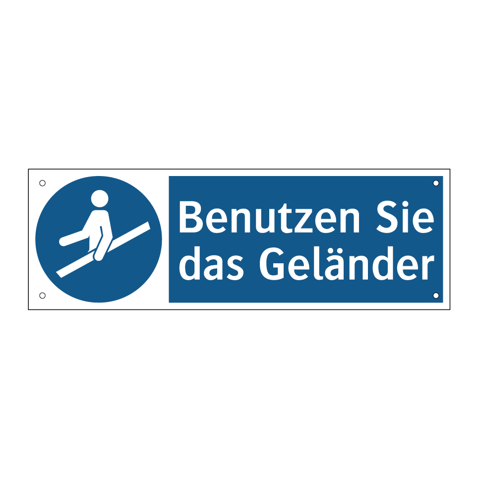 Gebotsschild mit dem Text Benutzen Sie das Geländer