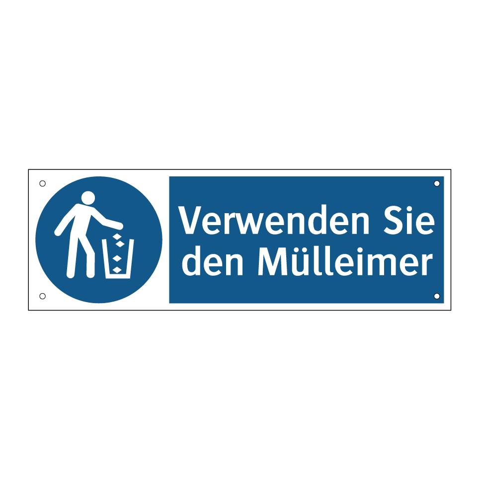 Diese Gebotsschild ist ideal für den Einsatz in öffentlichen Bereichen, um die ordnungsgemäße Entsorgung von Abfällen zu fördern. Mit ihrer auffälligen blauen Hintergrundfarbe und dem klaren Symbol zieht sie die Aufmerksamkeit auf sich und erinnert Passanten daran, den Abfalleimer zu nutzen. Diese Hinweistafel eignet sich hervorragend für Parks, Einkaufszentren, Bürogebäude und andere stark frequentierte Orte, an denen Sauberkeit und Ordnung wichtig sind. Durch die klare Botschaft wird das Umweltbewusstsein gestärkt und die Umgebung sauber gehalten. Platzieren Sie diese Gebotsschild an strategischen Punkten, um die Einhaltung der Abfallentsorgung zu gewährleisten.