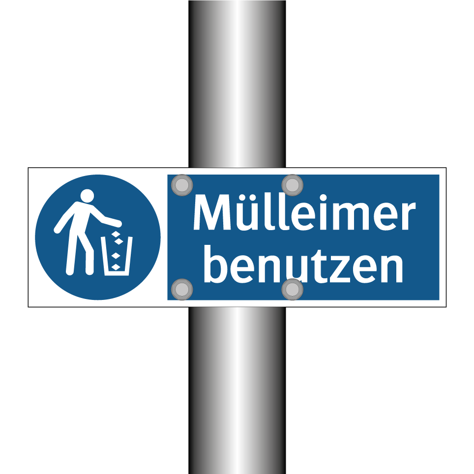 Diese Gebotsschild mit blauem Hintergrund und weißer Schrift ist ideal für den Einsatz in öffentlichen und privaten Bereichen, um die ordnungsgemäße Entsorgung von Abfällen zu fördern. Sie eignet sich hervorragend für Parks, Einkaufszentren, Bürogebäude und andere stark frequentierte Orte, an denen Sauberkeit und Hygiene von größter Bedeutung sind. Die klare Symbolik und der prägnante Text ermutigen Passanten, Abfälle in den dafür vorgesehenen Behältern zu entsorgen, was zur Erhaltung einer sauberen und angenehmen Umgebung beiträgt. Diese Gebotsschild ist ein unverzichtbares Element für jeden Ort, der Wert auf Ordnung und Sauberkeit legt.