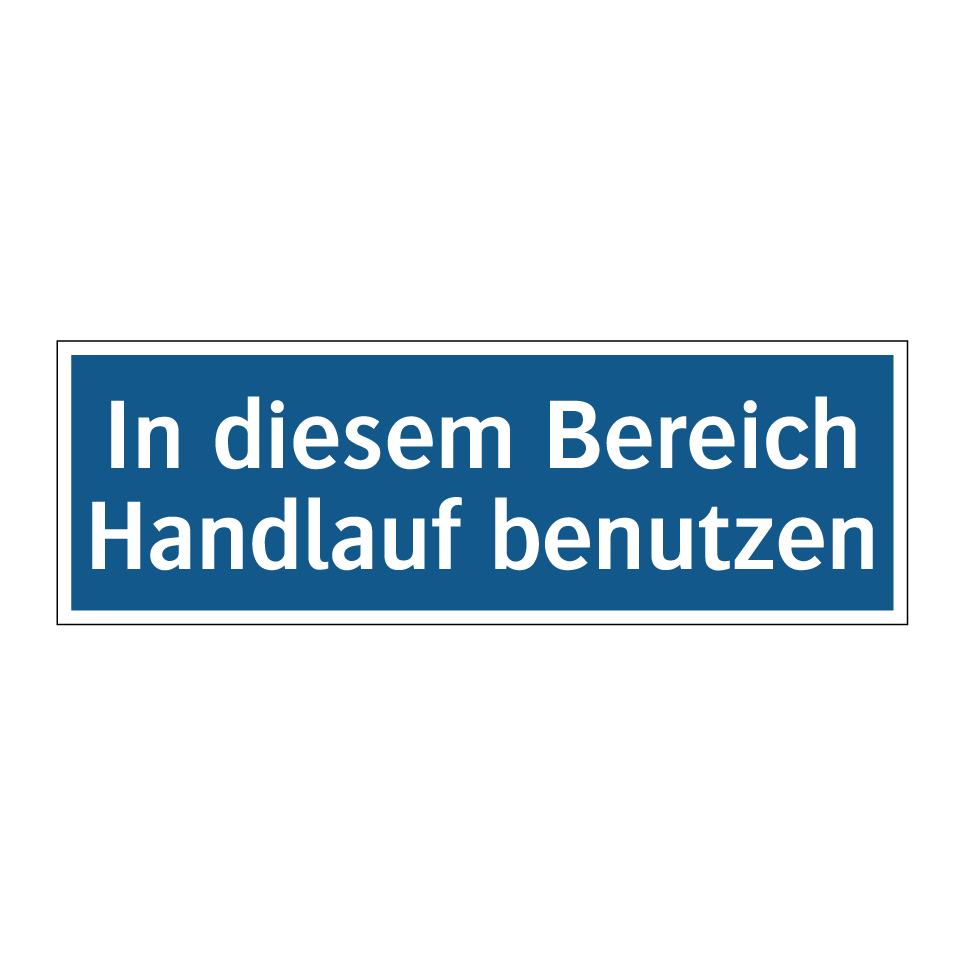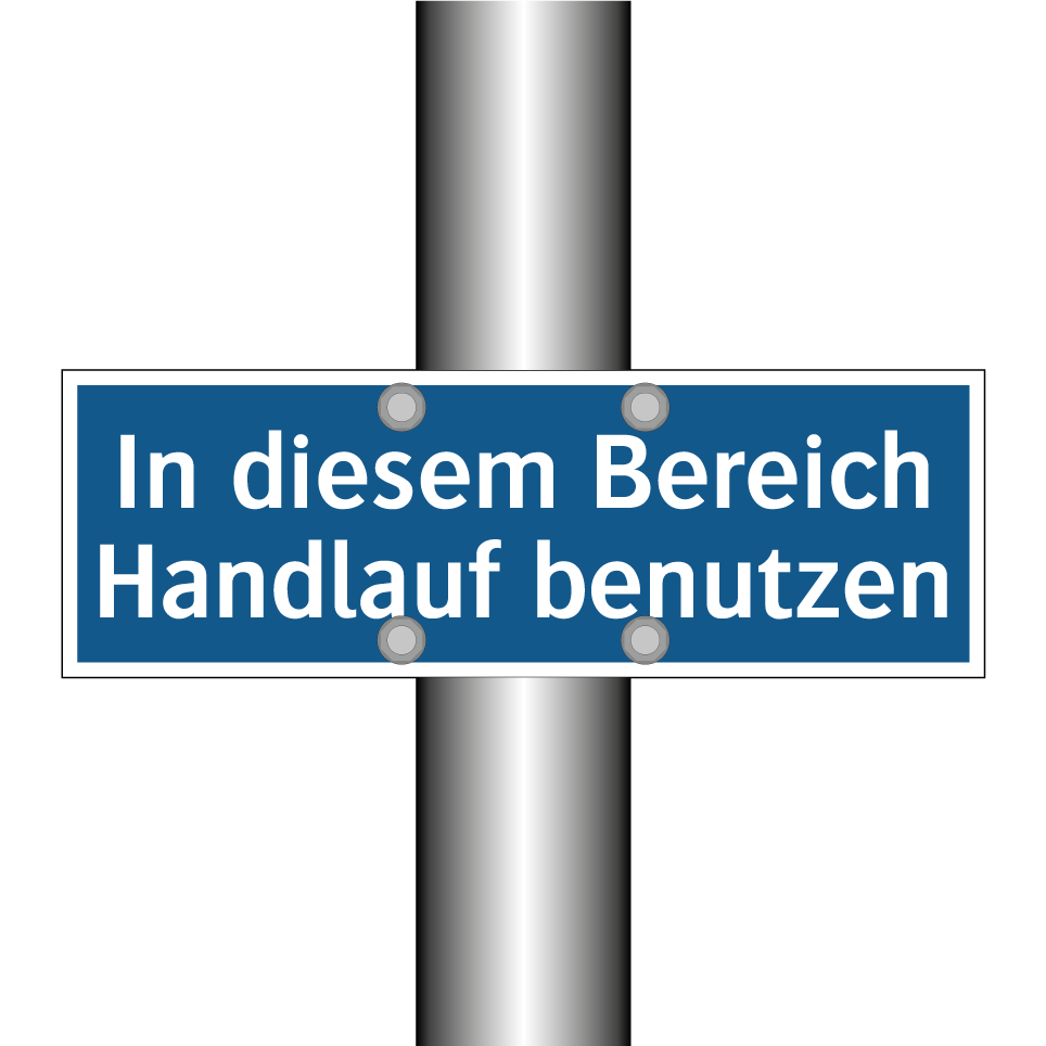 Gebotsschild mit dem Text In diesem Bereich Handlauf benutzen