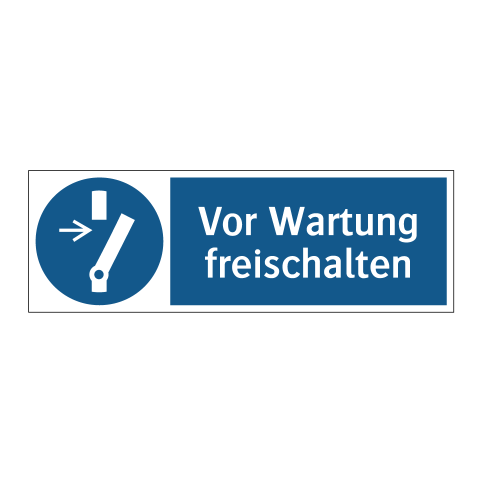 Gebotsschild mit dem Text Vor Wartung freischalten